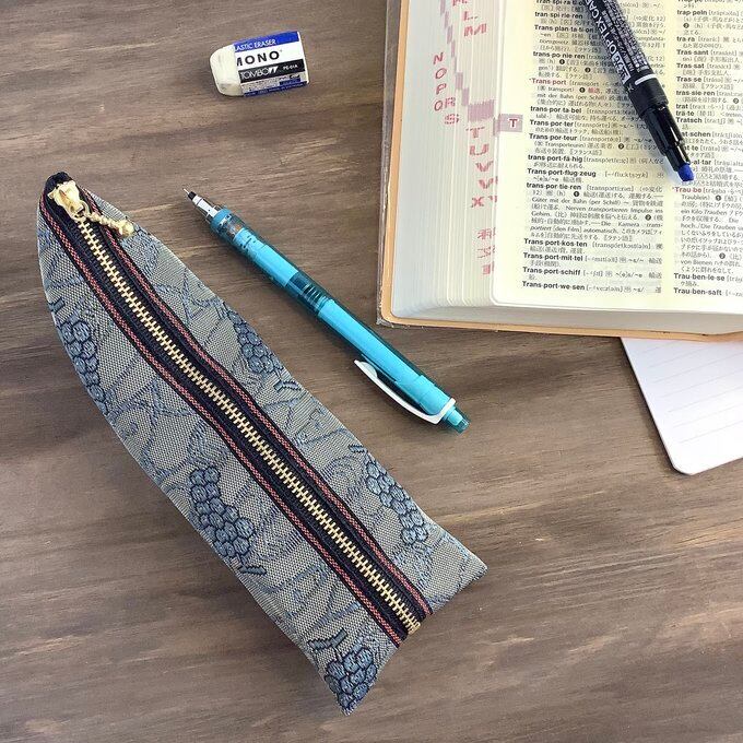 たわわに実ったぶどう柄の畳縁で作ったペンケースです。