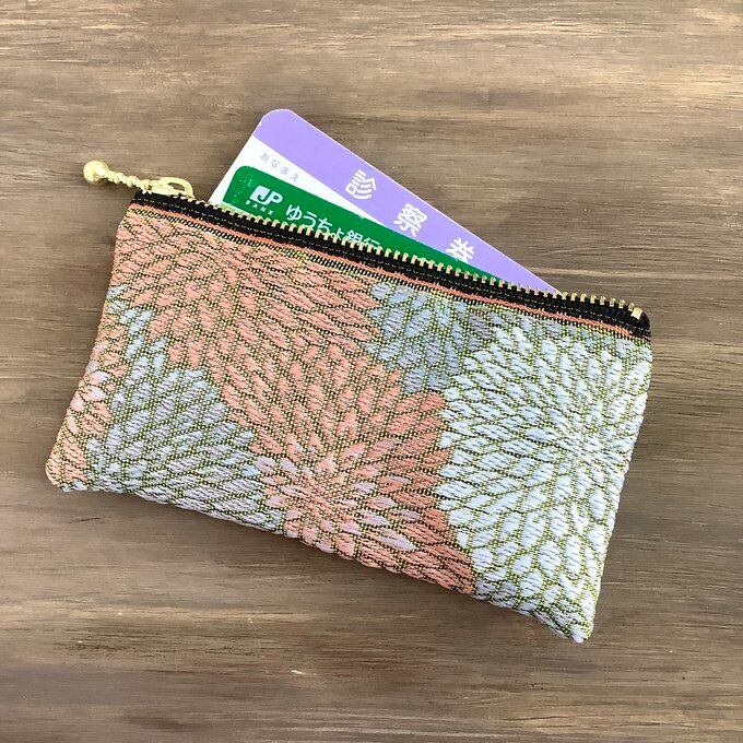 落ち着いた色合いの畳縁で作ったミニポーチです。