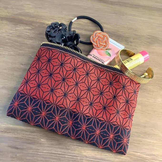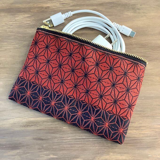 繋ぎ合わせて作った、ちょっと大きめのぺたんこポーチです。