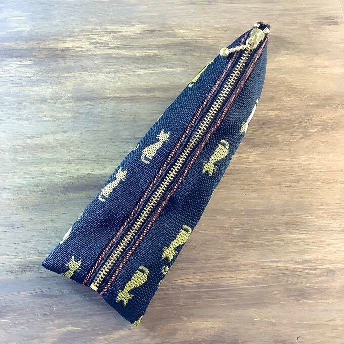 金色の猫が織り込まれた、大人っぽいペンケースです。