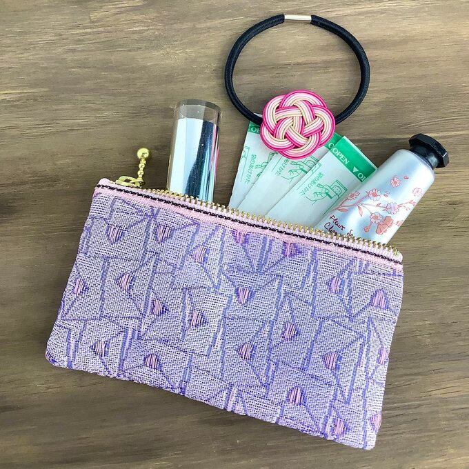 心を込めて書いたラブレター柄の畳縁で作ったミニポーチです。