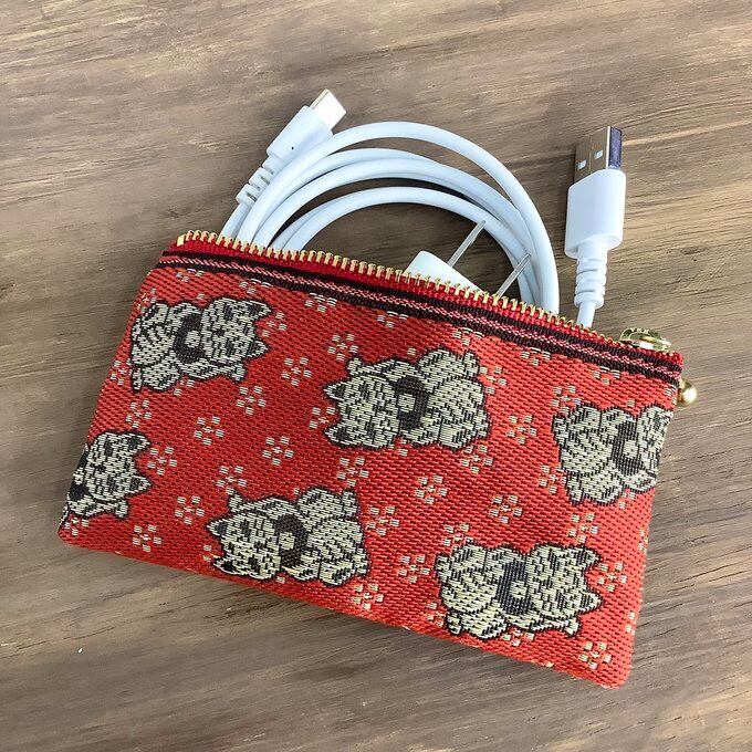 和風でキュートな招き猫柄の畳のヘリで作ったミニポーチです。